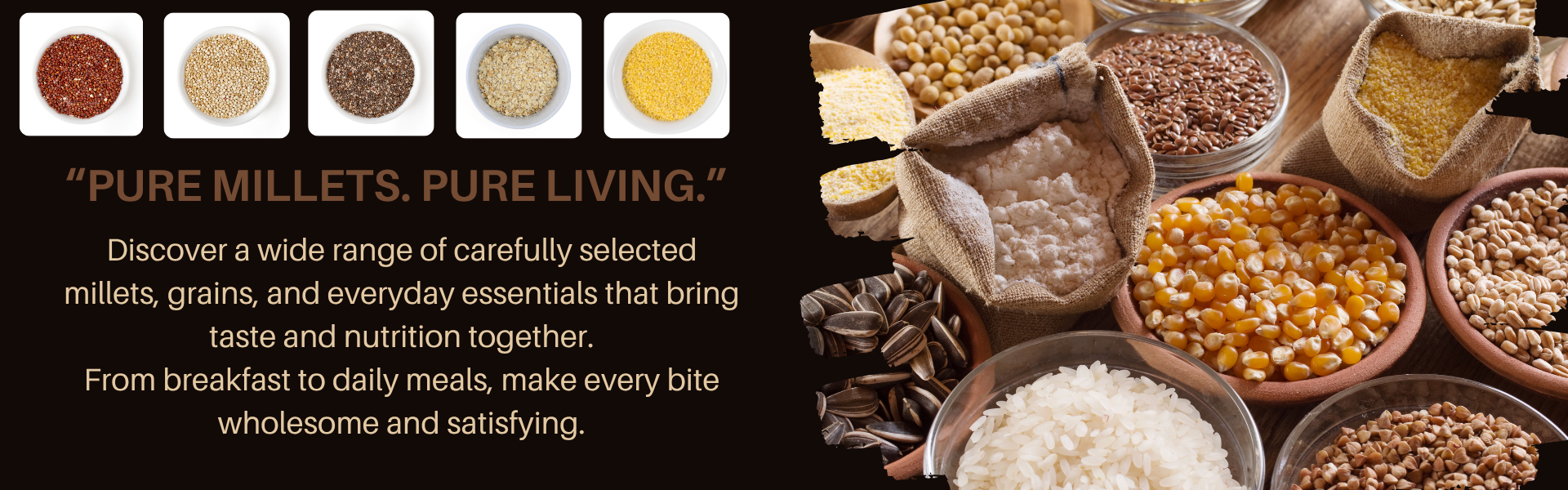 At ragikana.in, we believe good health starts with what you eat. That's why we bring you a handpicked selection of wholesome food products — nutrient-rich cereals, protein-packed pulses, premium dry fruits, cold-pressed oils, and aromatic spices. No compromise on quality, no shortcuts on sourcing. Just pure, natural food delivered straight to your doorstep across India.